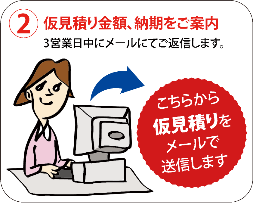 ②担当より仮見積り金額、納期、注意事項等をお返事致します